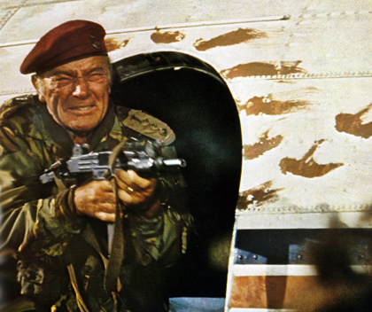 | Richard Burton é o Coronel Allen Faulkner, mercenário "cão de guerra" |